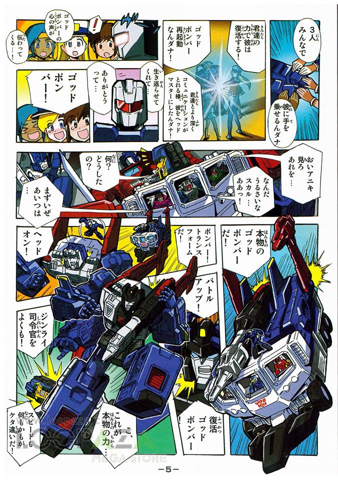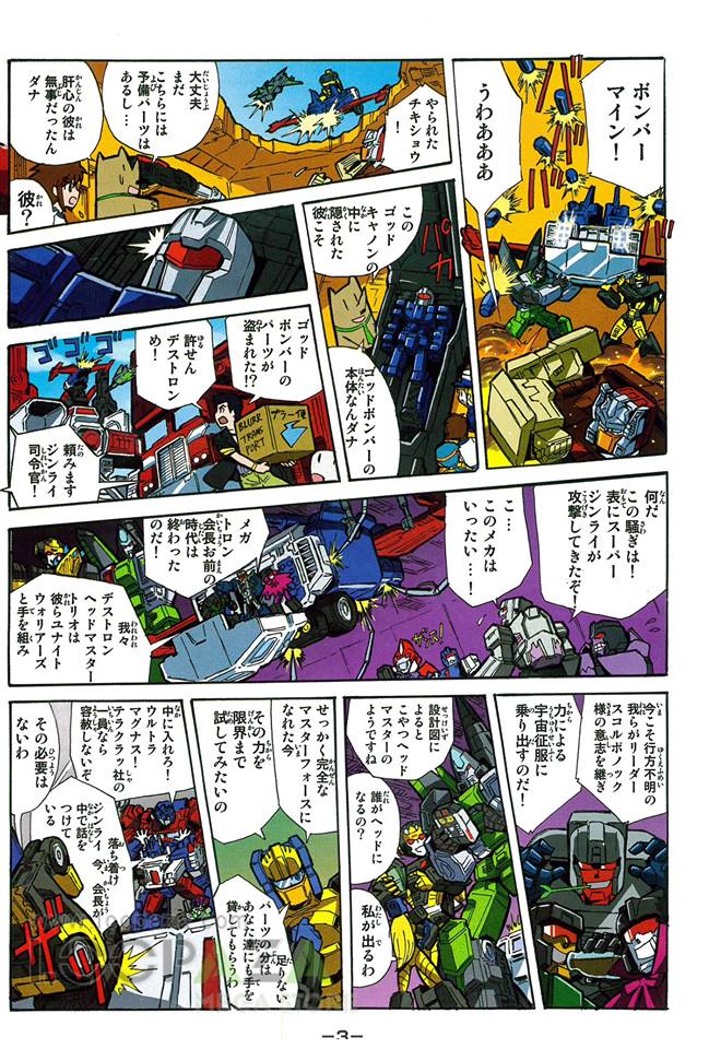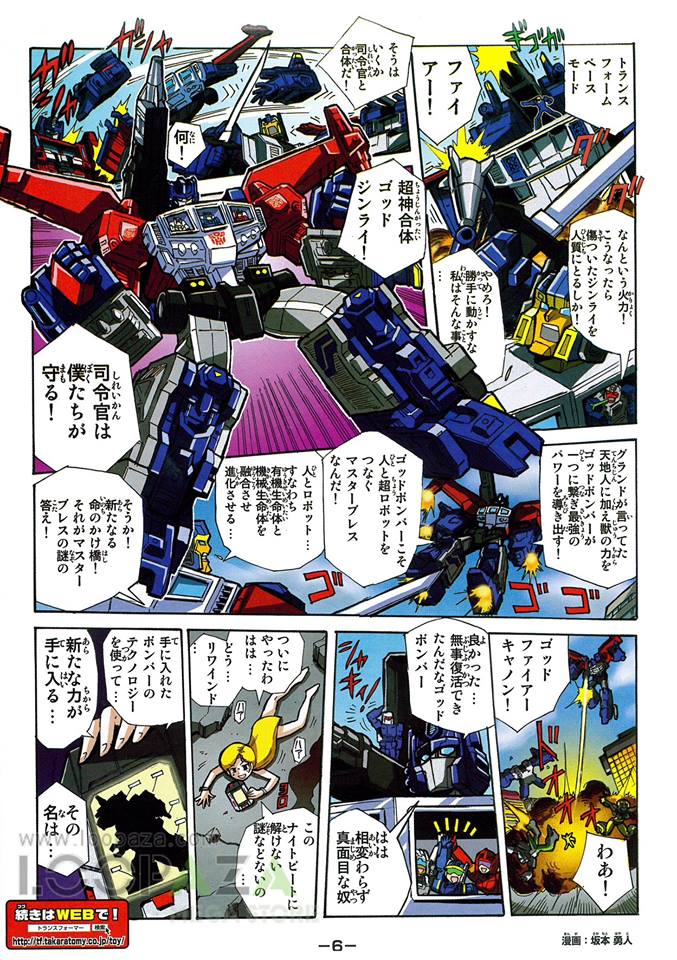 On Facebook, Loopaza has shared a set of scans for the mini-comic included with Legends Godbomber, being released in Japan this weekend. The comic, in Japanese of course, depicts an alternate Minerva (in Nightbeat-color armor) stealing Godbomber, and then canonizes the toy's ability to connect to Combiner Wars/Unite Warriors figures by hooking up with Curse Armada Thrust and Trickdiamond - before being defeated by God Ginrai, formed from ...another Godbomber? Well, let's just hope for a translation to explain that part. Meanwhile you can check out the scans in the gallery below. You can pre-order this now at BigBadToyStore.com.