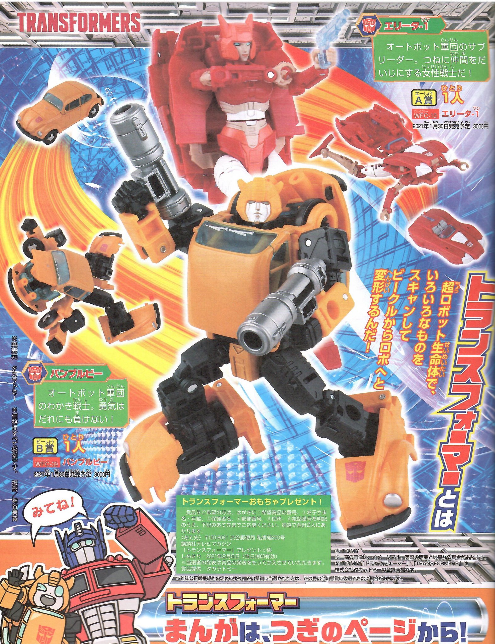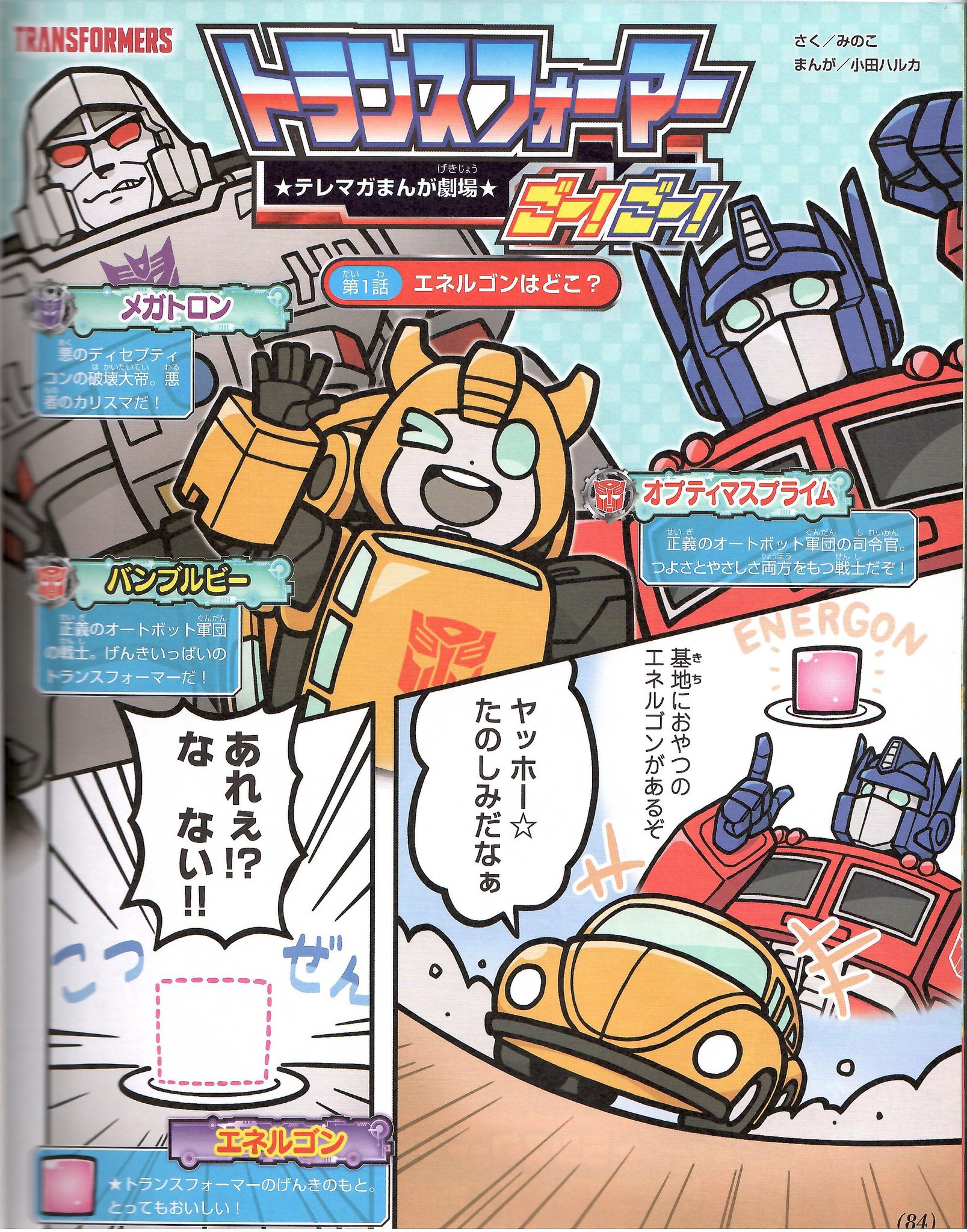 Thanks to The Randy Rodeo @poweredconvoy who has shared scans of the new Transformers Go! Go! Telemaga Manga Theater Series from the February 2021 issue of the Japanese popular culture publication, TV Magazine. Check out the in-language SD style characters of Convoy (Optimus Prime), Megatron, Bumblebee, and others below.