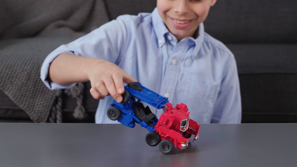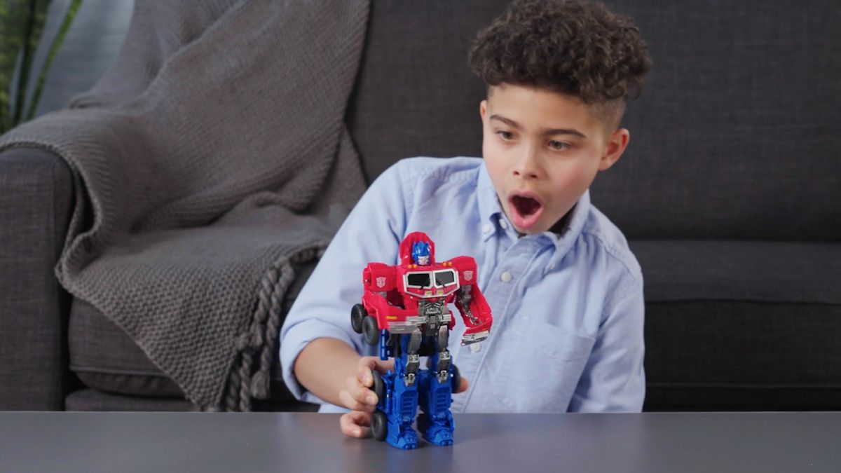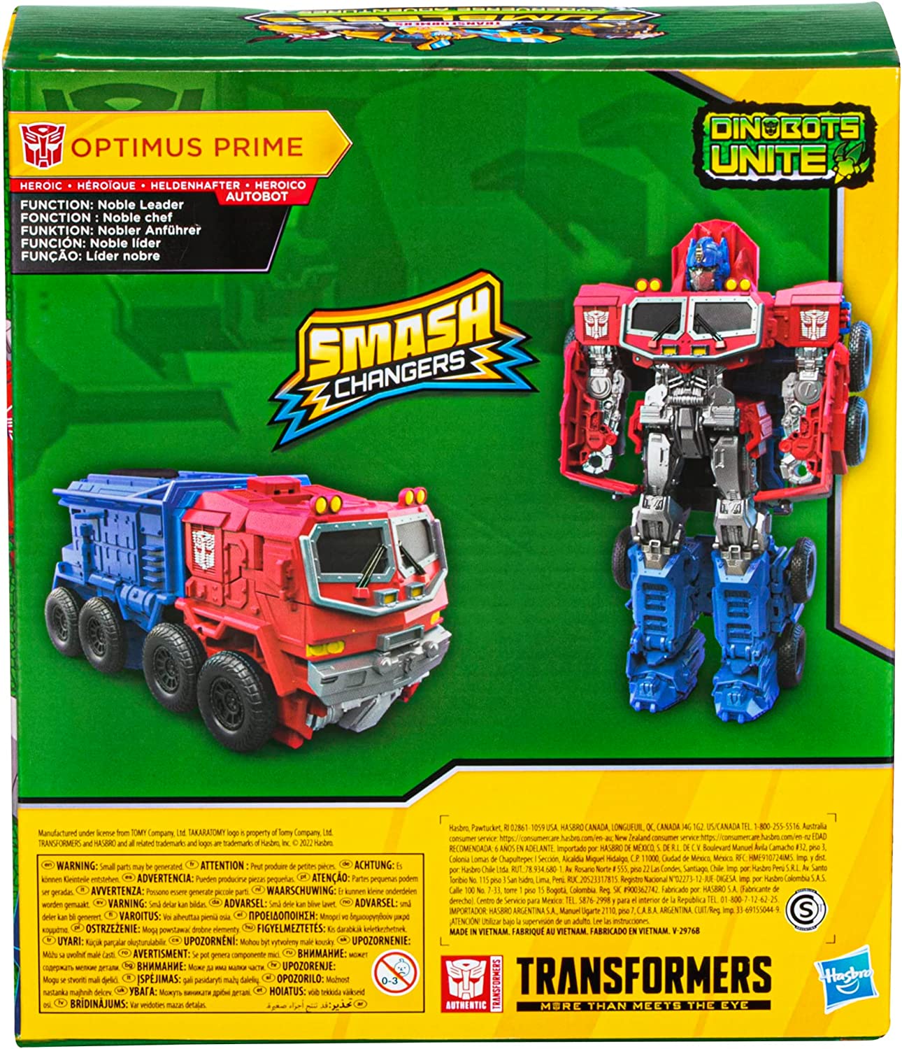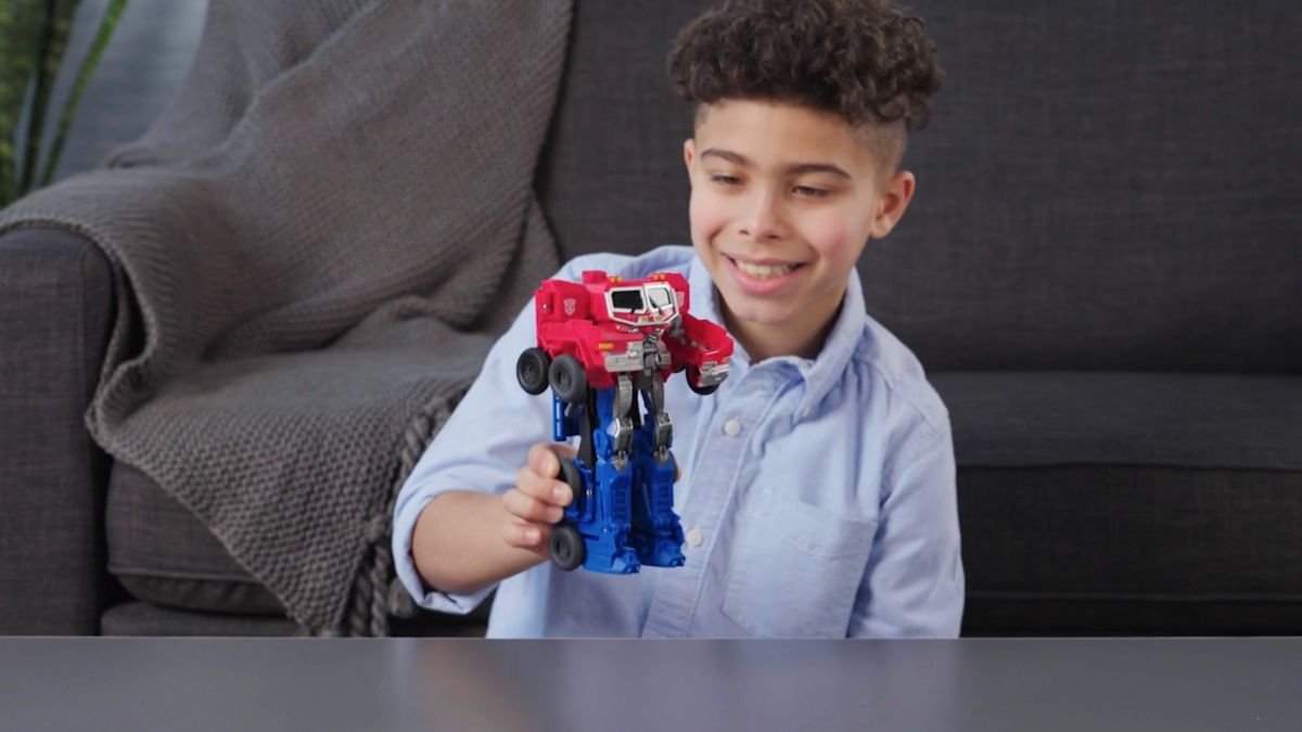 Smash into battle with TRANSFORMERS SMASH CHANGERS! This OPTIMUS PRIME figure stands at 9 inches and can convert from truck to robot mode in 3 steps by smashing! Each smashing motion activates a conversion step. Kids can manually convert back to OPTIMUS PRIME’s alt mode in 11 steps. This OPTIMUS PRIME toy robot is inspired by the Noble Leader character in the Transformers: Bumblebee Cyberverse Adventures cartoon, as seen on the official TRANSFORMERS YouTube channel and Netflix. The war between heroic AUTOBOTS and evil DECEPTICONS continues in the 2-part series finale of Transformers: Bumblebee Cyberverse Adventures animated series. As a powerful new threat targets CYBERTRON, it is up to GRIMLOCK and his new friends, the DINOBOTS, to unite and save the planet! Discover the unique powers and skills of each BUMBLEBEE CYBERVERSE ADVENTURES character and see how those powers will be used to defend CYBERTRON… or threaten it. Collect other TRANSFORMERS: BUMBLEBEE CYBERVERSE ADVENTURES figures inspired by the animated series -- one of the best ways to introduce young kids and new fans to the exciting world of TRANSFORMERS (each sold separately, subject to availability). Available at most major toy retailers.