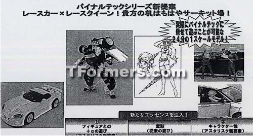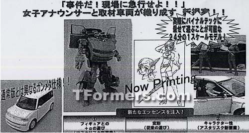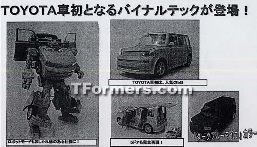 Many thanks to Reboundicon for sendinding us images from the Takara catalog with our first look at the Toyota Scion BT-17 Skids figure as well as pics of the new reissues what will come with an accessory action figure what can sit inside the vehicle. The figures are listed as the following names: