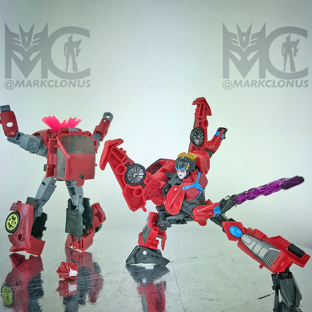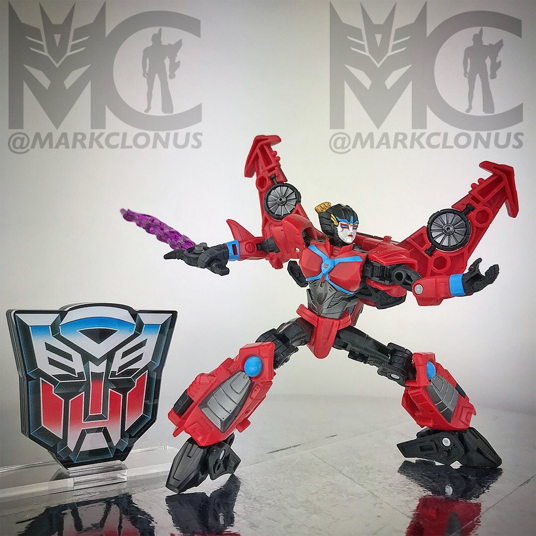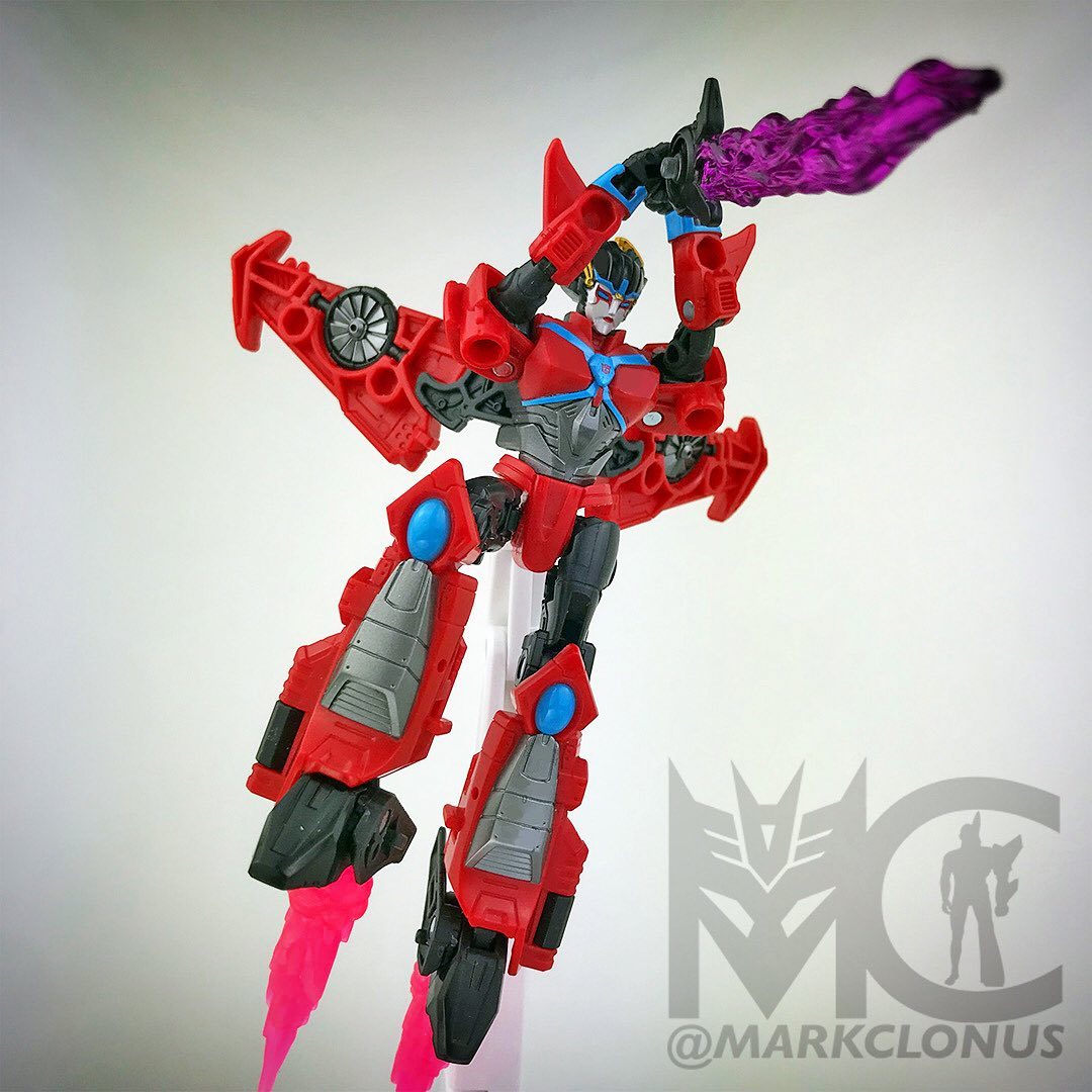 She does resemble her appearance in Cyberverse as I felt in my heart her character persona and features in that series really stood out. But, this figure adopts traits and style tidbits from her first generations figure and her appearance in the machinima series. I did peek at alot of the comic styles of her and the Legacy United fusion has welcomed this sleek, aerodynamic version of her to slice into your collection.