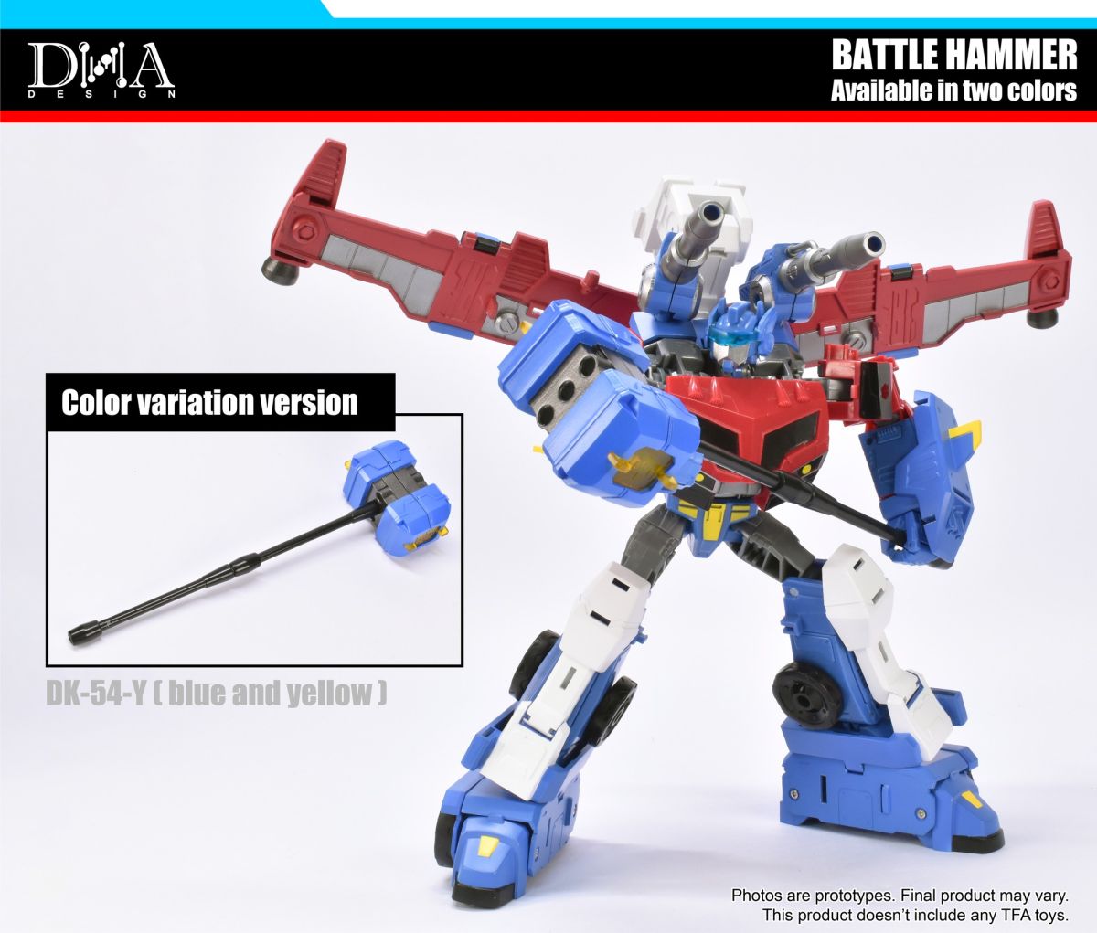DNA Design gives fans more of what they are asking for with some updates to their DK-54 United Animated Optimus Prime Wingblade Powermaster Upgrade Kit. The new pack adds Hammer options, Battle Mask, Battle Face Shield, and Partially Transparent Hammer Components. Read on to see the official update with images below.