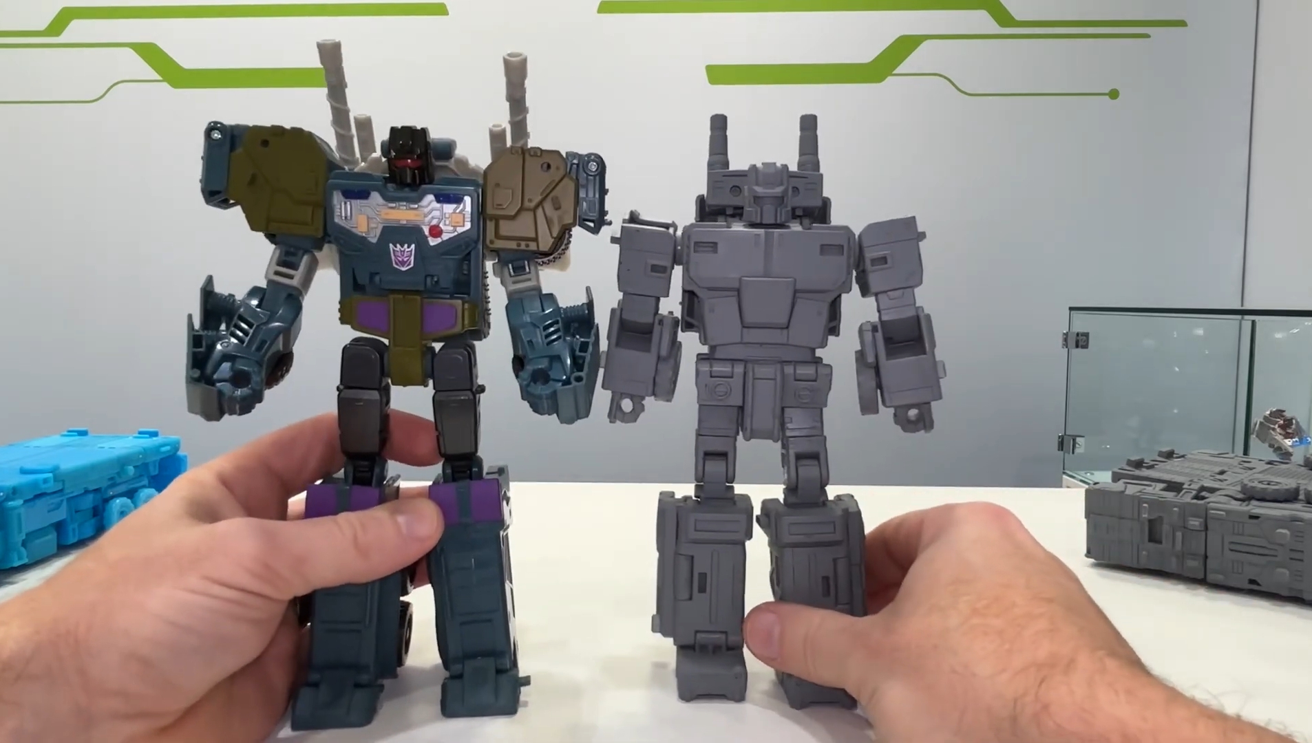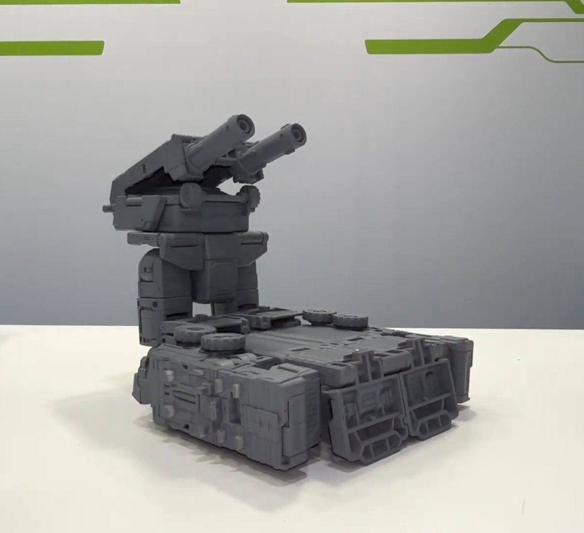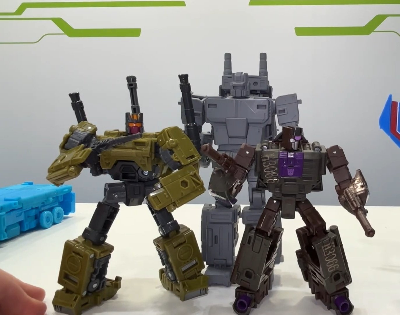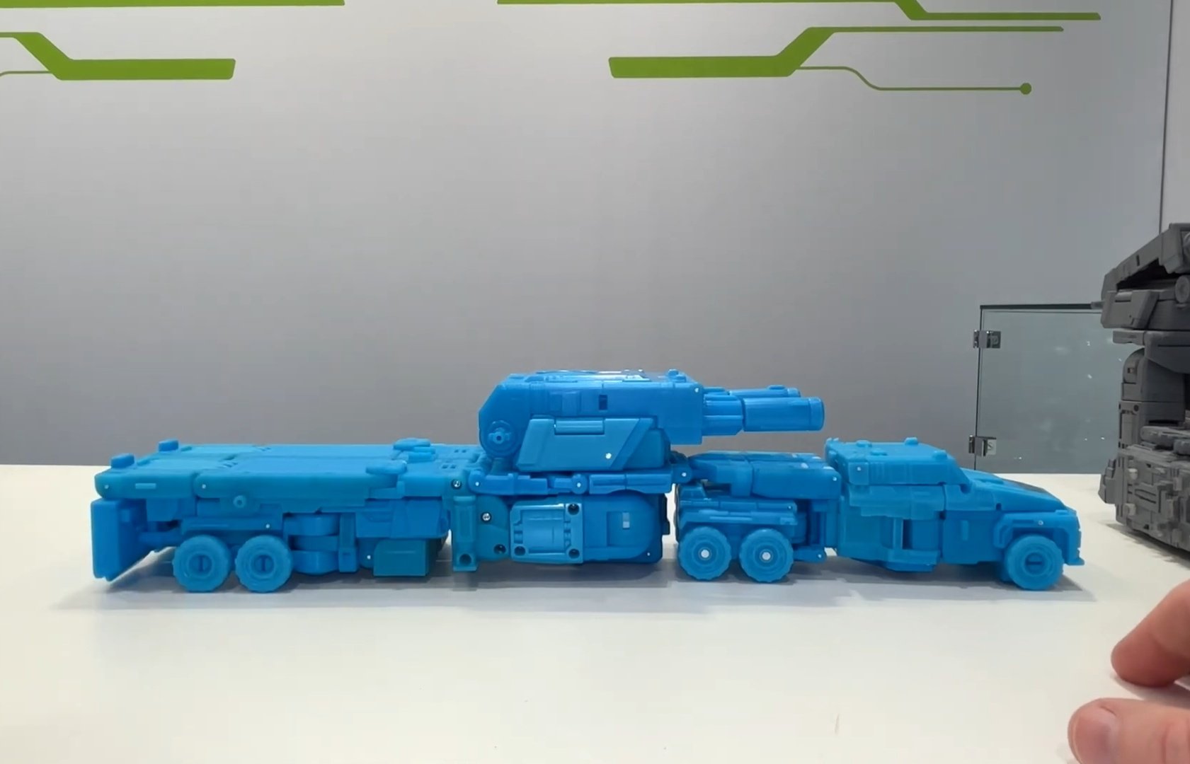 Designer, Evan Brooks, was on hand to show off the new Age Of The Primes Combaticon Onslaught Commander that is shown in the grey and blue model forms with views of robot, truck, and base modes. Here we learn the trailer converts into a battle base.