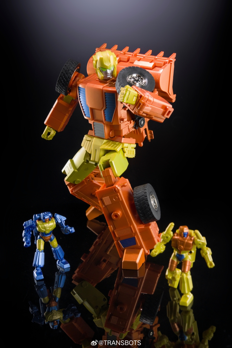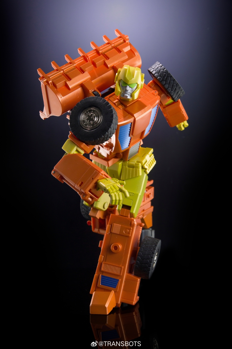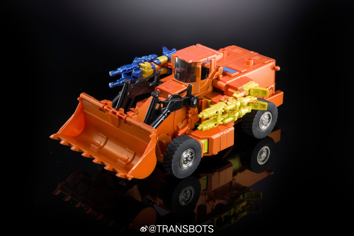 The unofficial Autobot Scoop release is an MP scale 22cm / 8.5 inch tall main robot / bulldozer figure includes two Mini-warriors that combine into a weapon, hand gun, alternate comic head, and extended articulation with the ever popular ab-crunch action!