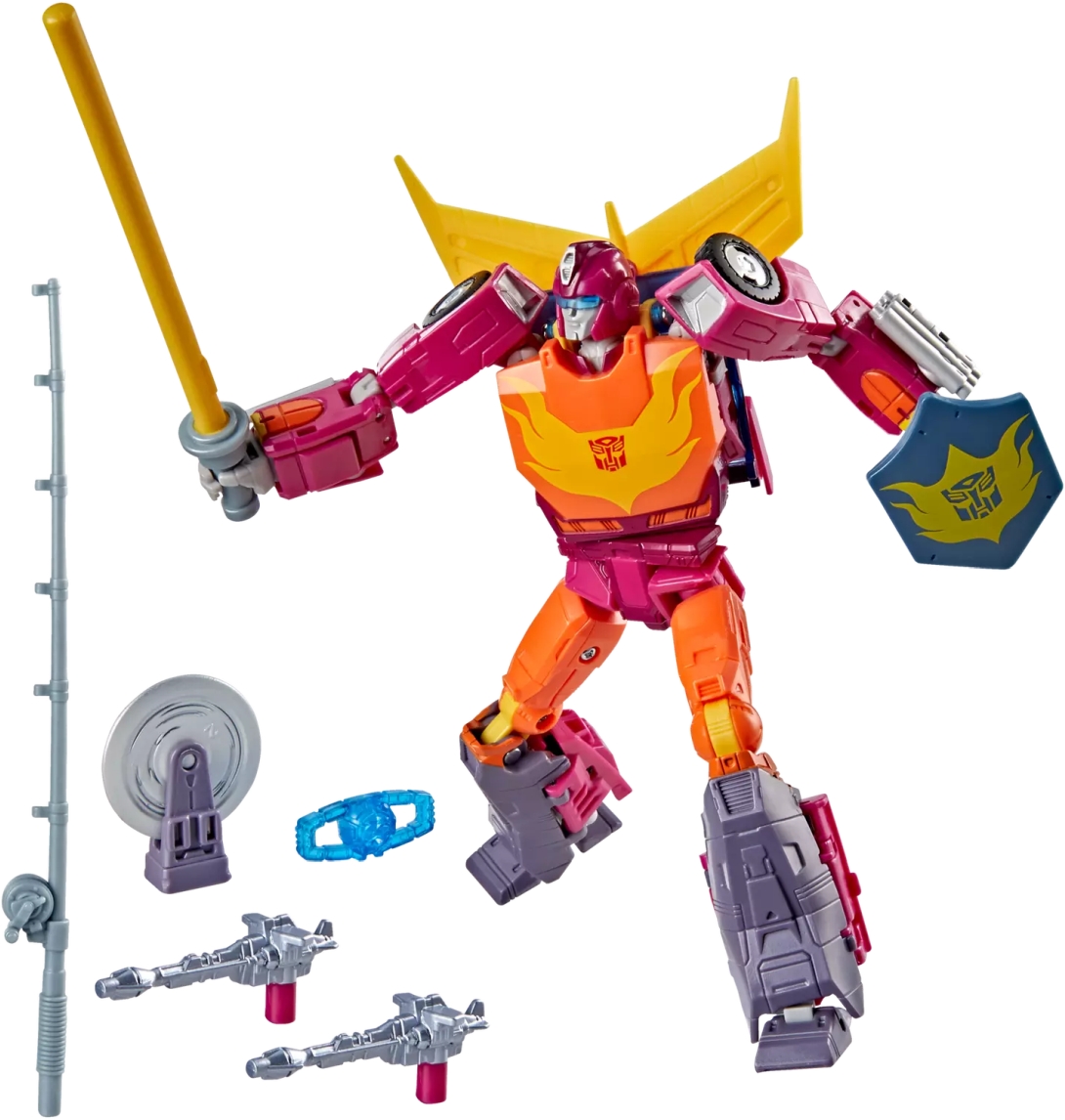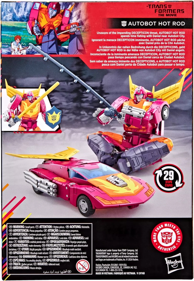 Celebrate the 40-year anniversary of The Transformers: The Movie with the Transformers Studio Series MTMTE Collection Autobot Hot Rod action figure. The 5.5-inch (14 cm) figure converts from robot to toy car mode in 29 steps. With movie-inspired details, intricate poseability, and attachable accessories like a fishing rod, beam sword, and shield, this Autobot Hot Rod figure makes an awesome addition to any collection. Look for more Transformers collectible toys (sold separately, subject to availability) featuring favorite characters like Optimus Prime, Bumblebee, Megatron, and more to create a lineup that is: More Than Meets the Eye.