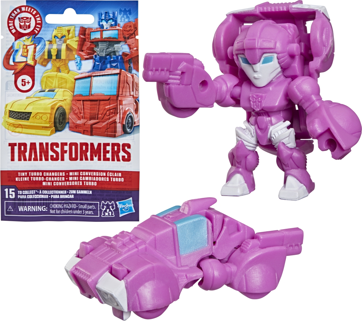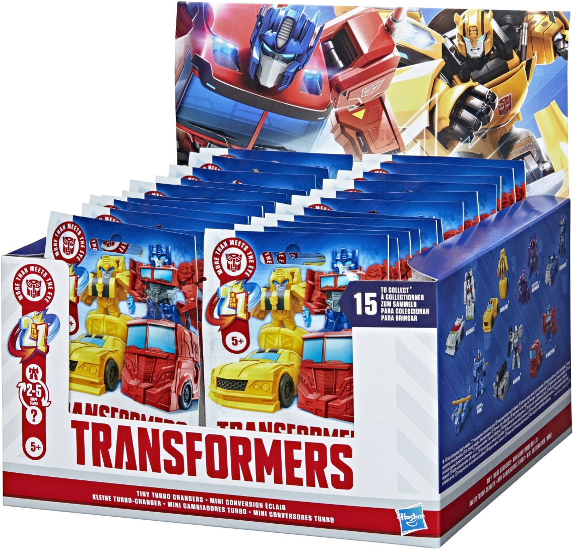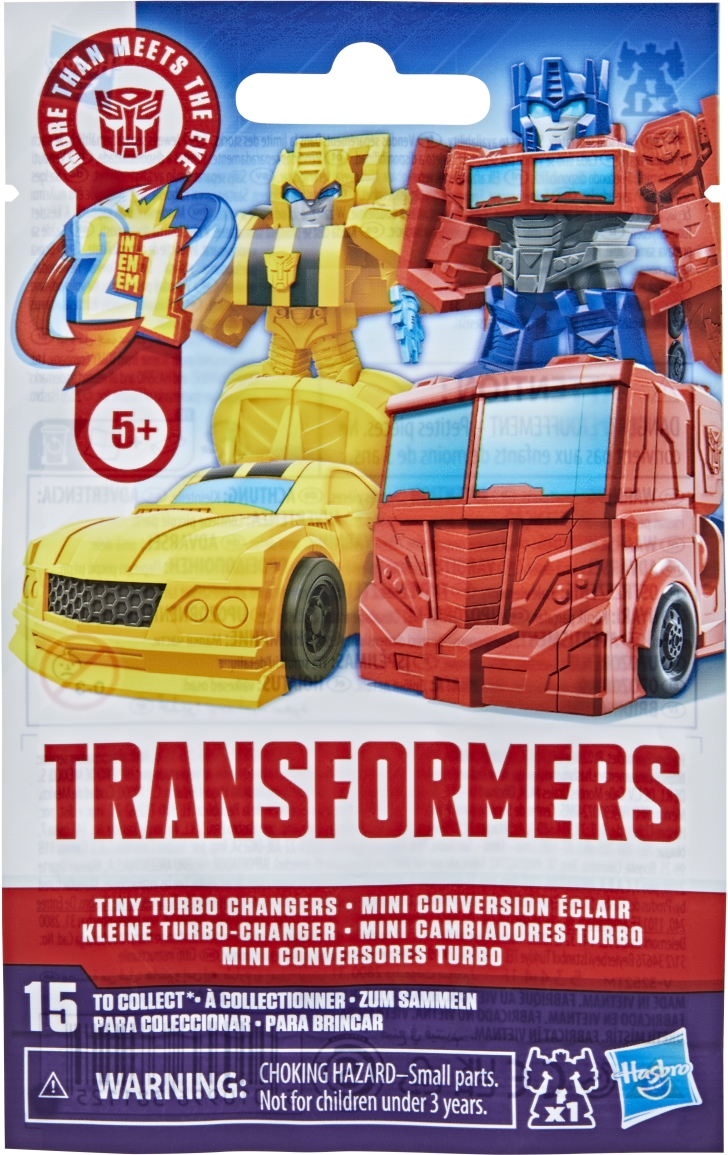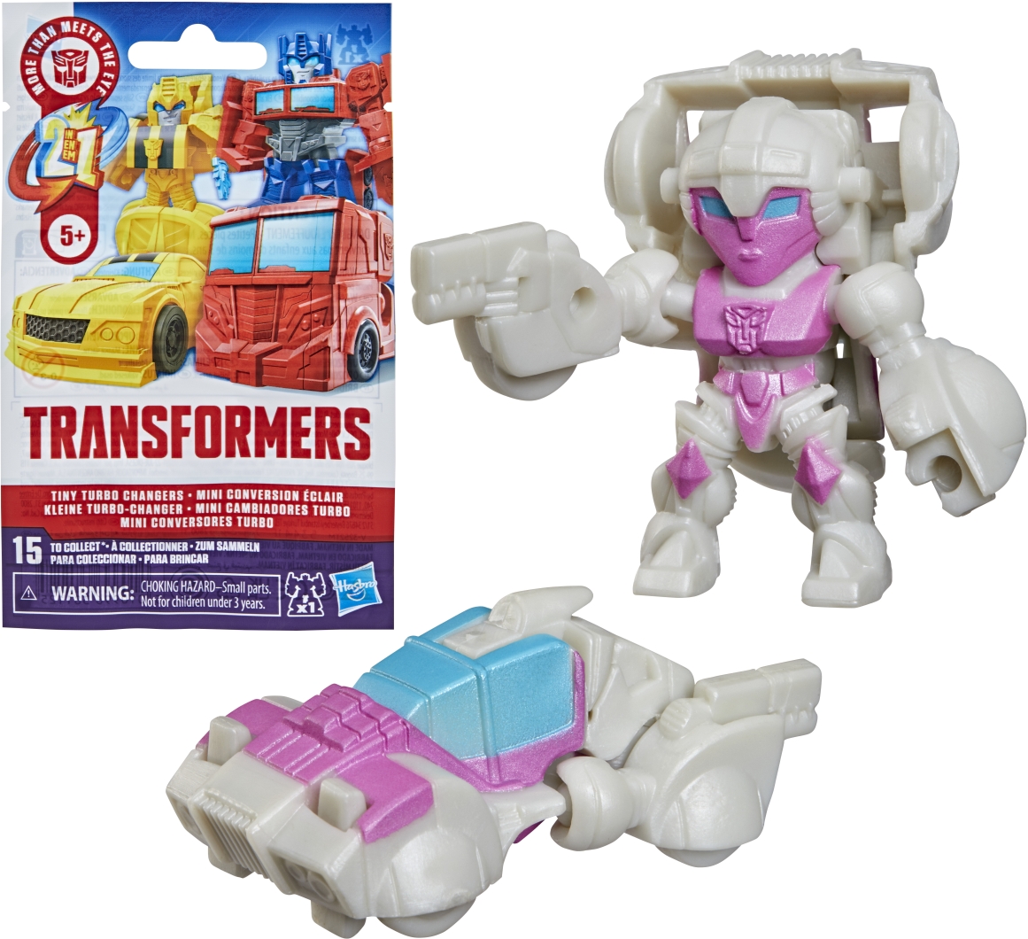 Discover 1 of 15 surprise mini action figures with TRANSFORMERS Tiny Turbo Changers toys! Each 1.5-inch figure changes from robot mode to alt mode in just 2 to 5 steps that are simple enough for kids ages 5 and up. Possible characters are Optimus Prime, Bumblebee, Wheeljack, Autobot Whirl, Arcee, Autobot Hot Rod, Autobot Ratchet, Elita-1, Grimlock, Megatron, Shockwave, Soundwave, Starscream, Blackarachnia, and SkyByte. These small TRANSFORMERS toys make great stocking stuffers, Easter basket fillers, or birthday party favor toys.