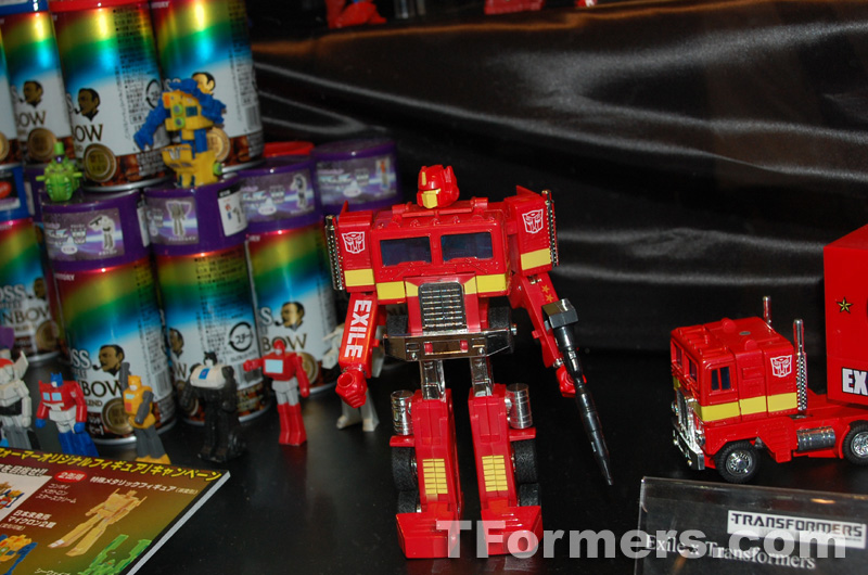 Thanks again to Yone of IRLabs and Tonkeye for photos from C3XHobby 2008 of TakaraTomy's Transformers display. This set of photos feature Masterpiece Thundercracker, Henkei! Transformers displayed along with their G1 counterparts, and a What the Heck?! Music Label Convoy Exile x Transformers iPod Speaker. Check out the gallery - UPDATE: More Images Added! LAVISH COMMUNIZT CONVOY! :argh :lol