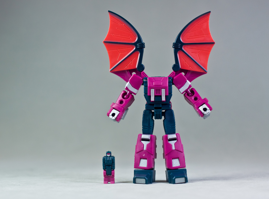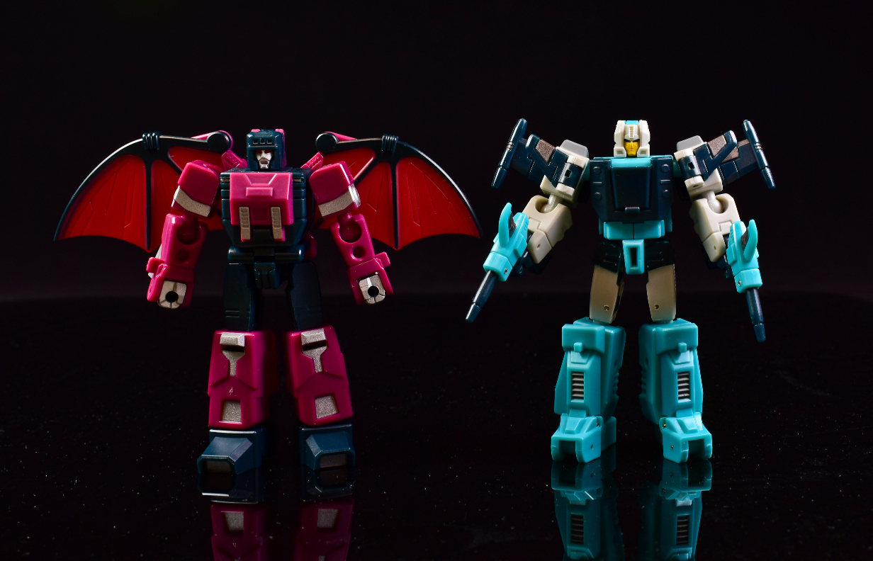 Site sponsor TFSource has posted images of their Palm Collection Blue Cat & Naughty, AKA Brainstorm & Mindwipe! These Palm Collection figures are more or less Legends-sized and feature functional Headmasters. Due out in March, they have a preorder price of $44.99. Keep reading to see the images!