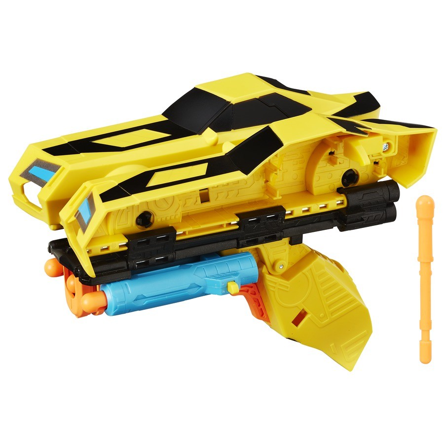 By way of UK distribution website WindDesigns we have pictures of a piece of Robots in Disguise merchandise. The Bumblebee Blaster transforms from Bumblebee's vehicle mode to a moderate size soft-dart gun. While the practical implications of this may be a bit questionable, it looks like a neat toy item in the same line of thinking as the old Battle Rig Blaster. Whether this will see wide retail or be one of the many such items that remains an overseas oddity to the US fanbase will have to wait and see. Click through to check out the pictures.