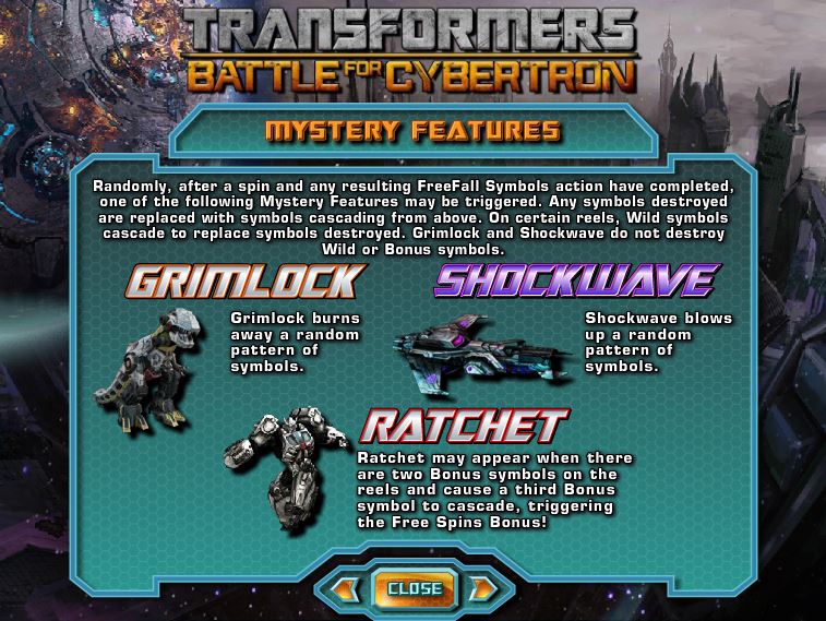 On the surface, Transformers: Battle for Cybertron may look like a classic five-reel slot game. However, once players dive into the game, they will find a wealth of features that are sure to attract both existing fans of the franchise and new players. With five mystery features as well as four different free spin bonuses, there is something for both novice and experienced players to discover and enjoy.