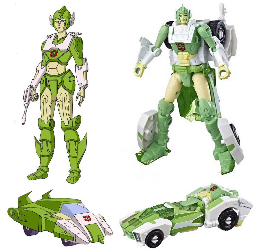 The Weibo post includes some composite images letting us see Greenlight alongside the earlier uses of the mold, as well as how it compares to the G1 cartoon design in both modes. If you squint, and tilt your head just a bit, you can kinda see the resemblance...