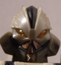 Starscream's robot mode has been the subject of much controversy. However, it's not as bad looking in person as it is on paper. He is still mostly tan, but now has some gold and red showing on the chest. There is that 'muscle jock' image emanating from him. This is due to the thin, "chicken" legs and the very broad chest and arms. While his face is less menacing looking than the other Decepticons, it is still alien in design. The eyes are piped amber.