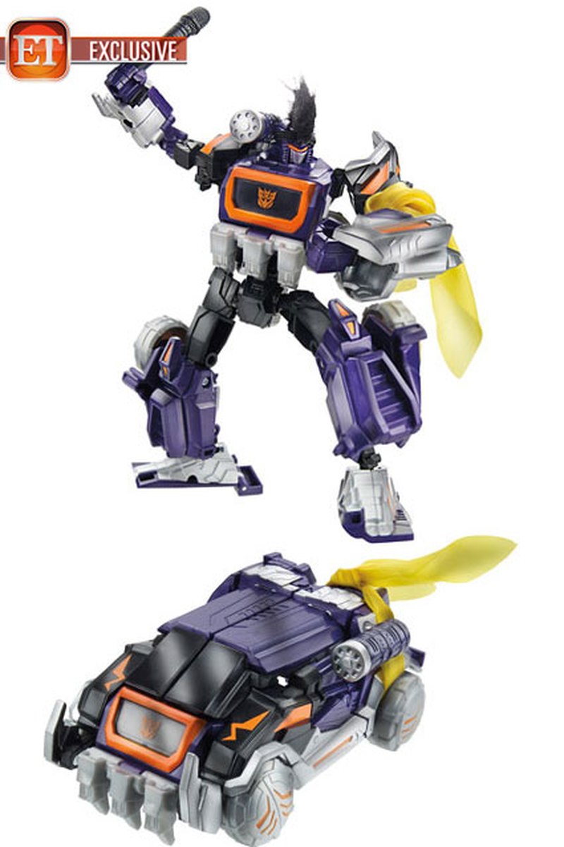 Entertainment Tonight has posted an exclusive look at "Knights of Unicron," this year's San Diego Comic Con International exclusive set- which reimagines the War For/Fall Of Cybertron molds of Optimus Prime, Soundwave, "Smooth" Jazz, and Megatron as a hair metal band, complete with Animated Laserbeak and Ratbat guitars, and will cost USD$185. We've mirrored the images here- click the title to see them now!