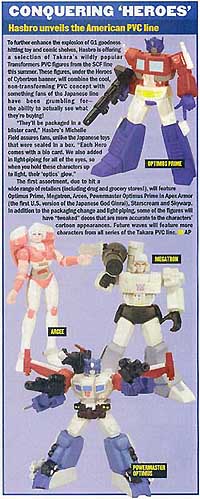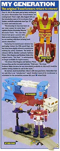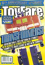 The August ToyFare magazine is featuring a spotlight on the new G1 Transformers and the PVC figures announced by Hasbro earlier this month. And not to be outdone, the August issue features a special newly updated Transformers price guide and more.
