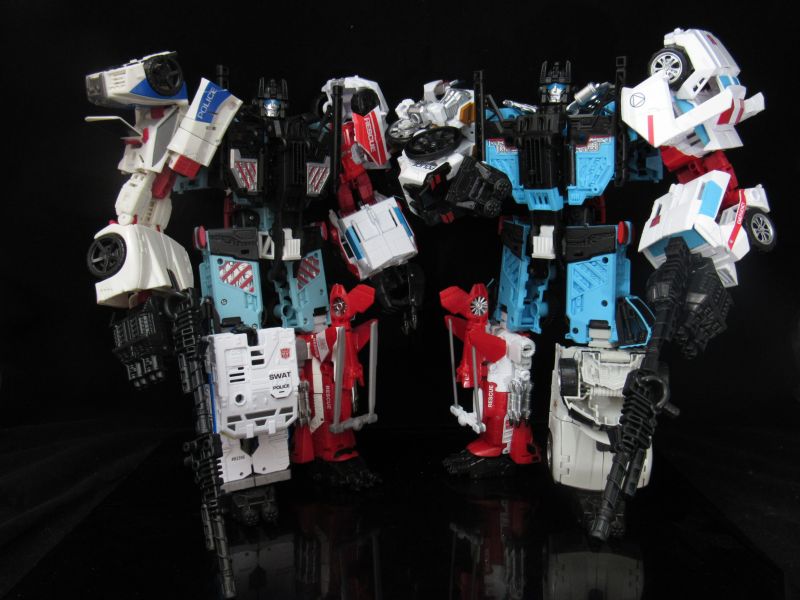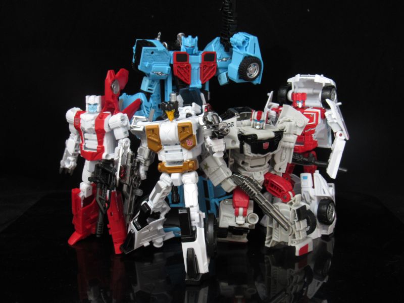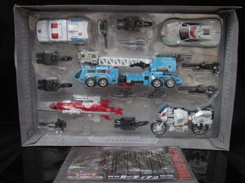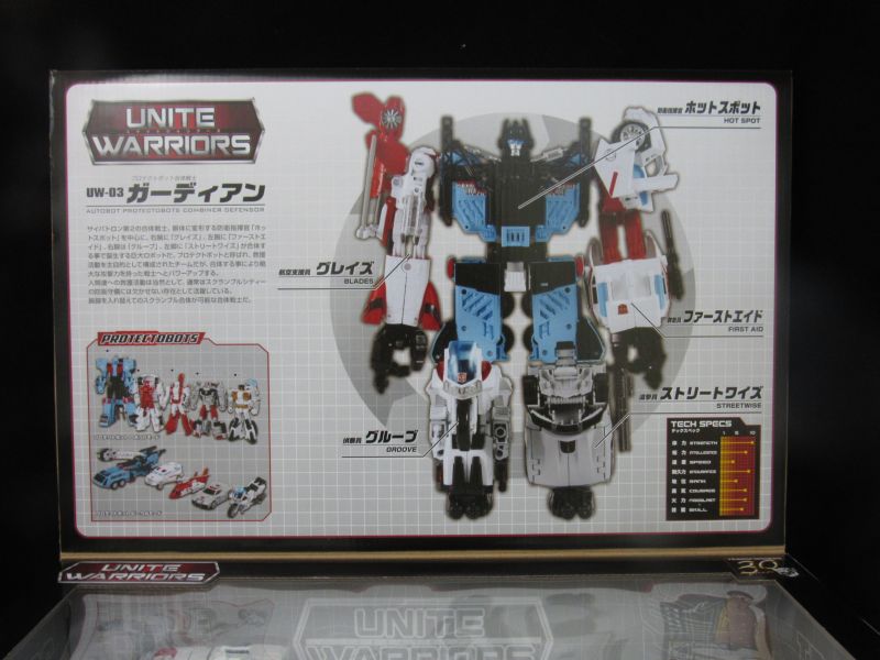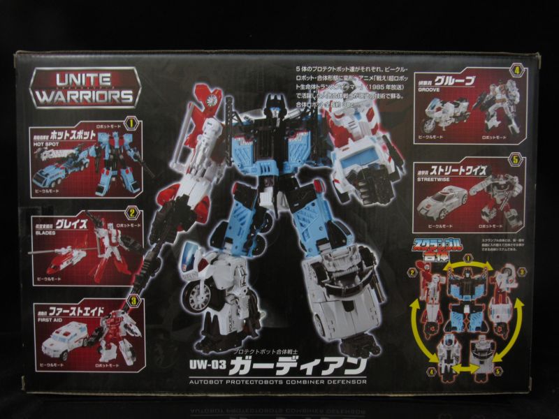 Taiyu Lin has posted an extensive gallery of the UW-03 Defensor set on Picasa, giving us a great look at the whole Protectobot team, including of course the long-awaited Deluxe Groove. Better looks at the packaging, including the team art featuring a baseball game, and the collector coin for this set are also included. While comprehensive side by sides weren't done, there is a photo of Unite Warriors and Hasbro Defensor together, as well as Deluxe vs Legends Grooves for comparison. Keep reading to check out the mirrored photos.